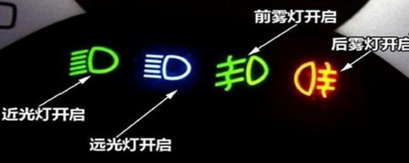 远光灯和近光灯的标志很像,不过也很好区别。左边的带直线的是远光灯的标志,斜向下线条的右侧图标就是近光灯的标志。