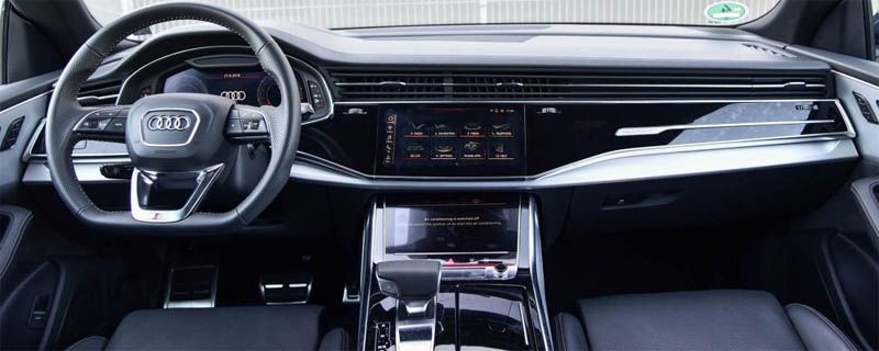 奥迪Q8与兰博基尼Urus同平台打造,定位于中大型豪华运动旗舰SUV,竞争对手直指宝马X6、奔驰GLE轿跑SUV,内饰部分,新车的整体设计风格与此前已上市的全新A8十分相似,采用了多屏幕式设计,12.3英寸全液晶仪表盘搭配上(10.1英寸)下(8.6英寸)两块中控触摸屏,整体视觉效果科技感爆棚。